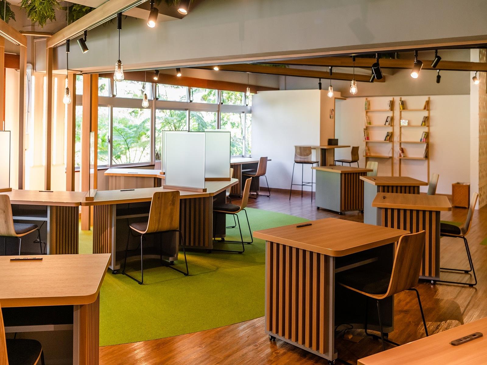 宿の施設内に作業場所 (ラウンジなど)