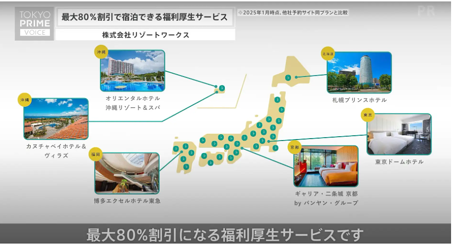 最大80%割引で宿泊できる福利厚生サービス「リゾートワークス」の動画CMを、4月14⽇(⽉)よりゴルフカートサイネージメディア「Golfcart Vision®︎ powered by Tokyo Prime」で放映開始いたしました!